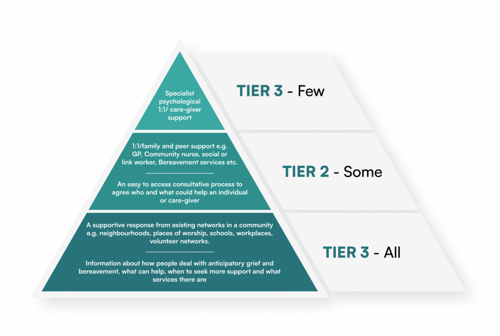Emotional support → Contact bereavement support groups, charities, or counselling services